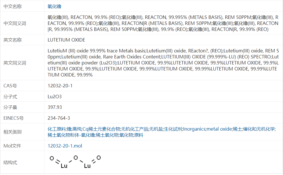 氧化镥 12032-20-1 含量99.99% 用于电子工业发光材料 实验试剂 100g起