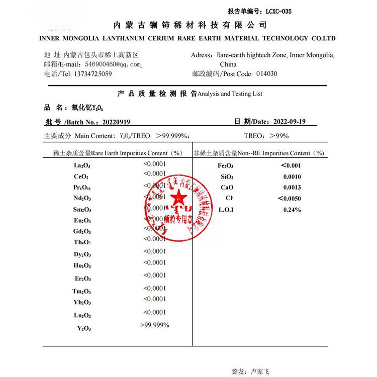 镧铈 氧化钇 微波用磁性材料半导体领域专用化工原料