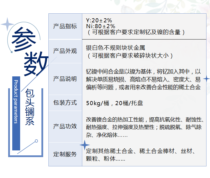 定制2 | 可根据客户要求,定制其他配分稀土合金 |