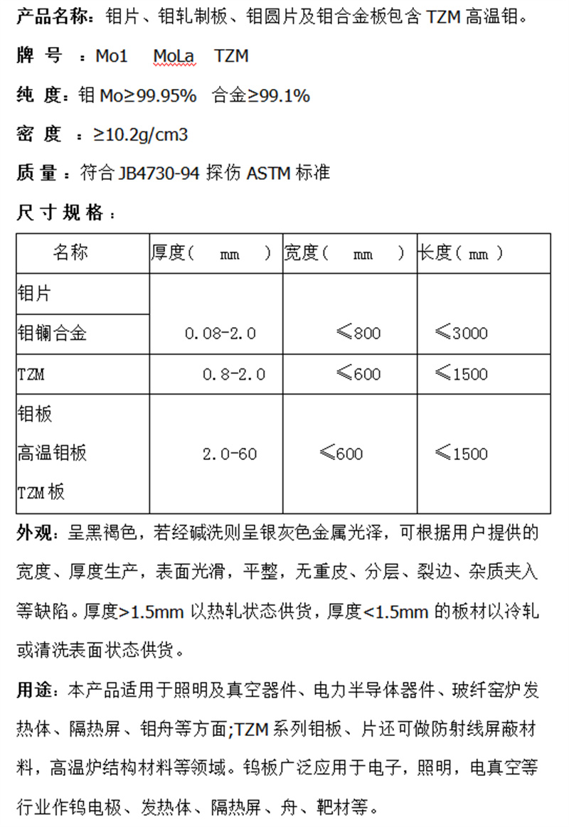 用途范围 | 医用设备 ,航空航天设备,精密仪器,高温退火炉等 |