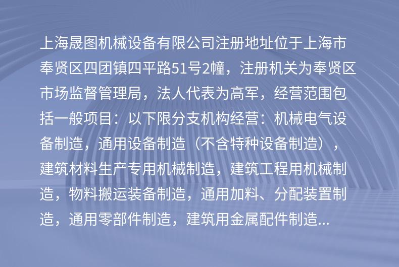 上海市奉贤区上海晟图机械设备有限公司上海市奉贤区四团镇金洋村金洋工业区143号上海晟图机械设备有限公司