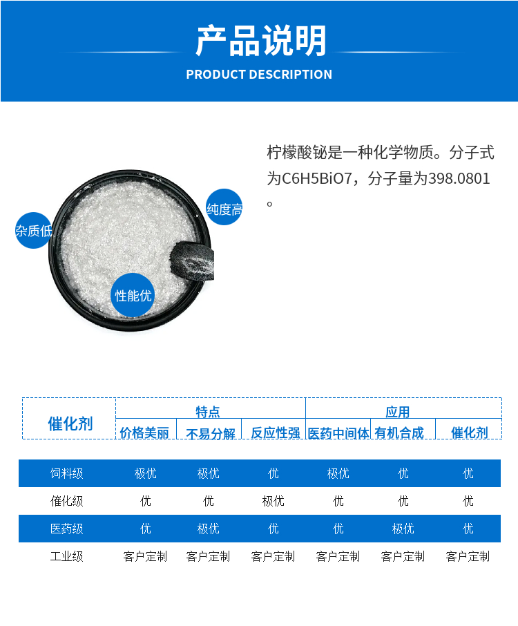 柠檬酸铋 含量≥99% CAS号813-93-4 用作有机合成催化剂