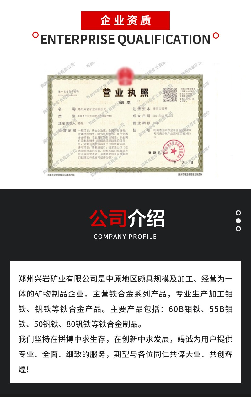用途范围 | 冶炼、炼钢、铸造合金添加 |