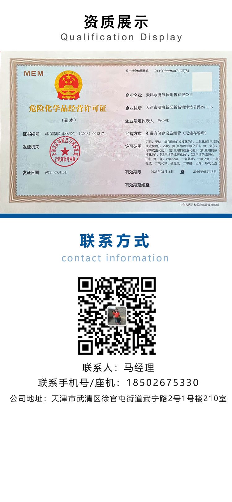 天津永腾气体销售有限公司