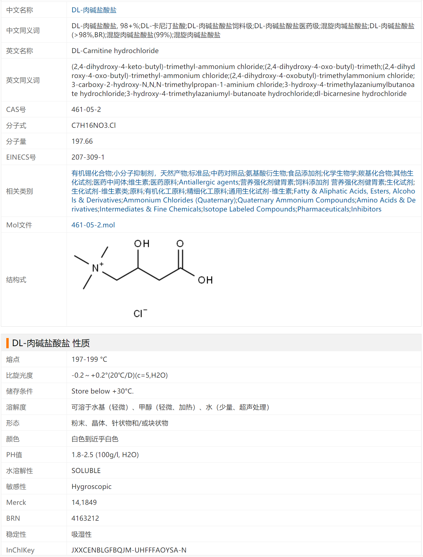 DL-肉碱盐酸盐 461-05-2 有机锡化合物 季铵类化合物 材料添加剂