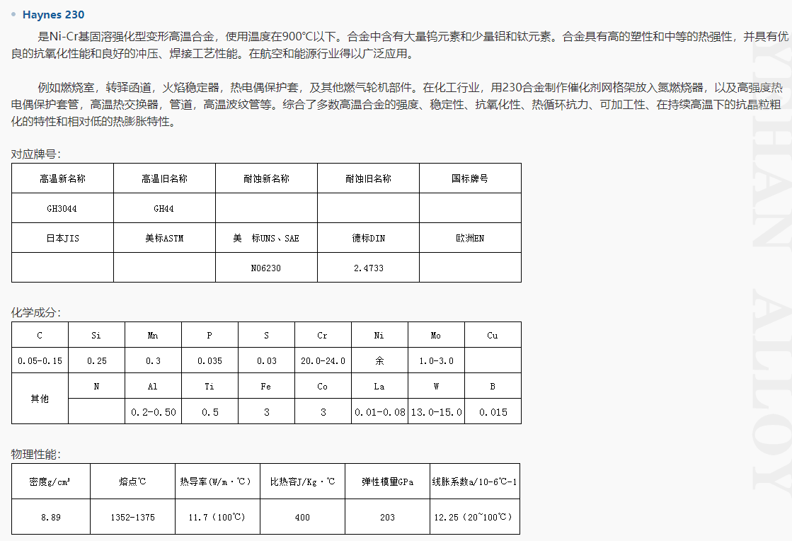 牌号 | Haynes230 |