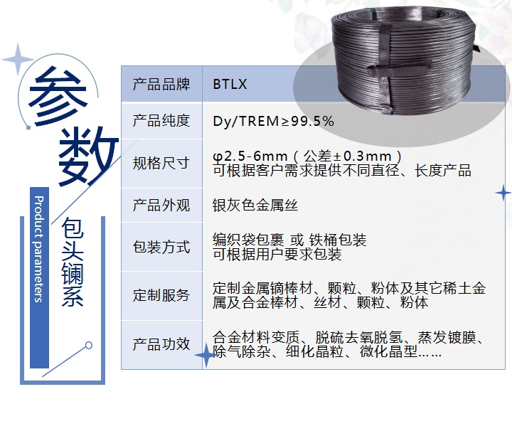 定制2 | 定制金属镝棒材、颗粒、粉体及其它稀土金属及合金棒材、丝材、颗粒、粉体 |