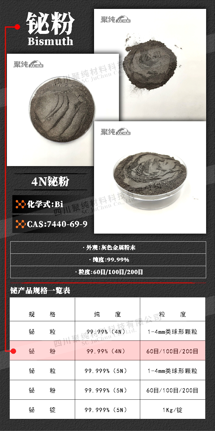 聚纯 铋粉 高纯超细粉末 4N 冶金添加剂、半导体、超导材料