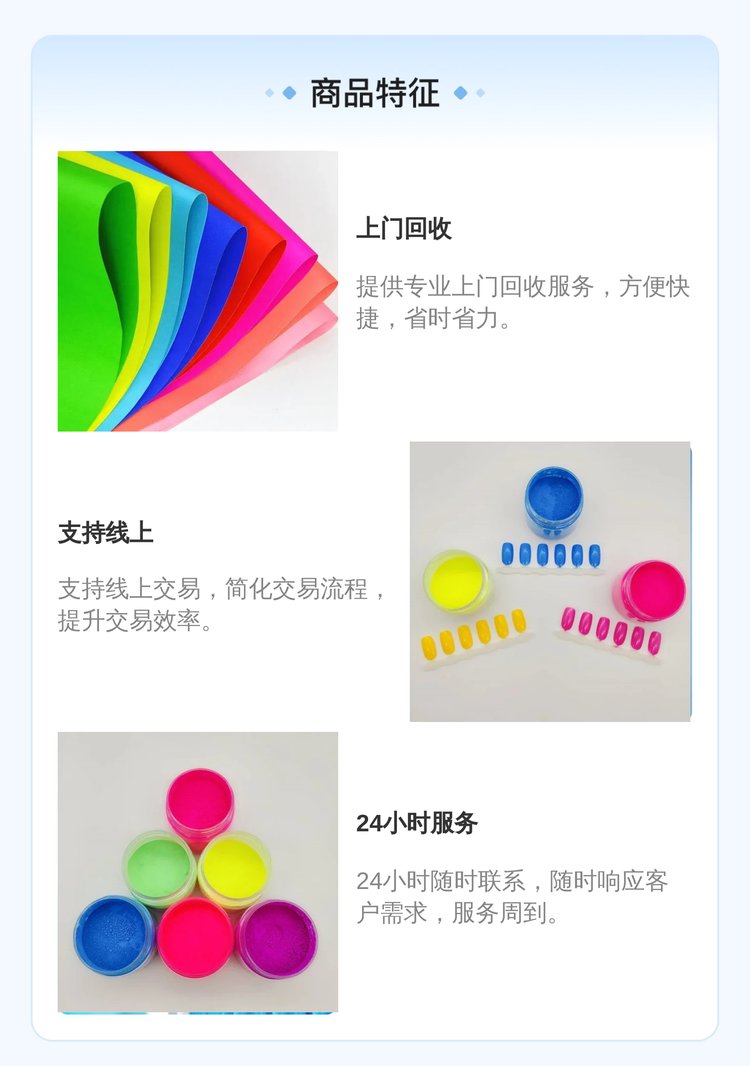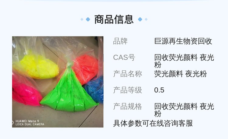 产品规格 | 回收荧光颜料 夜光粉 |