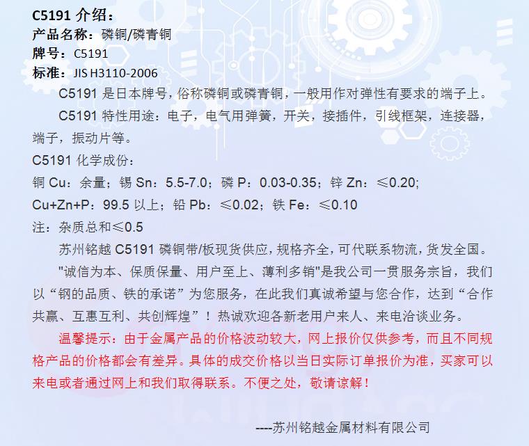 日标C5191磷铜带 锡磷青铜带材 规格齐全铭越金属 可分条零售