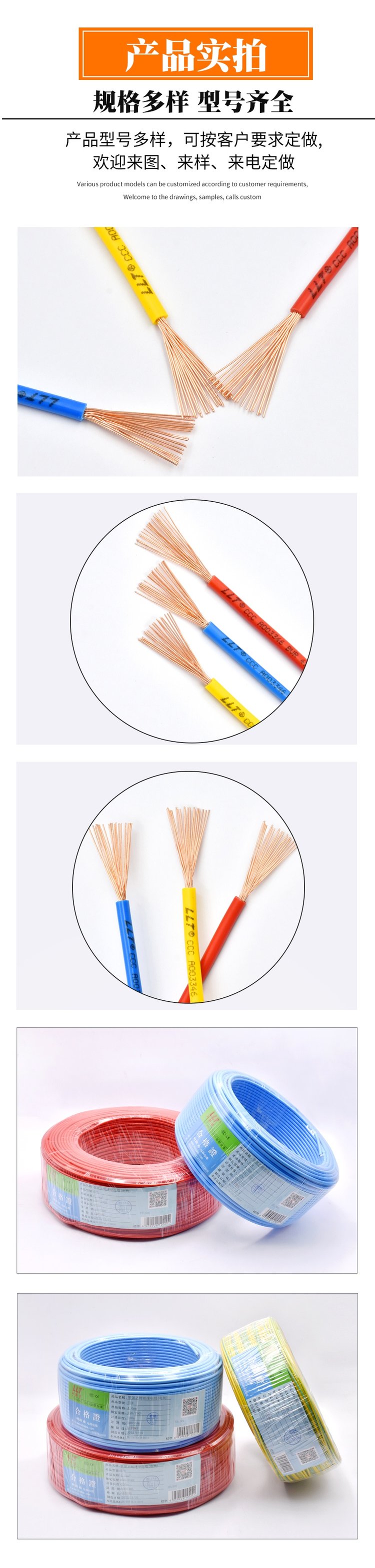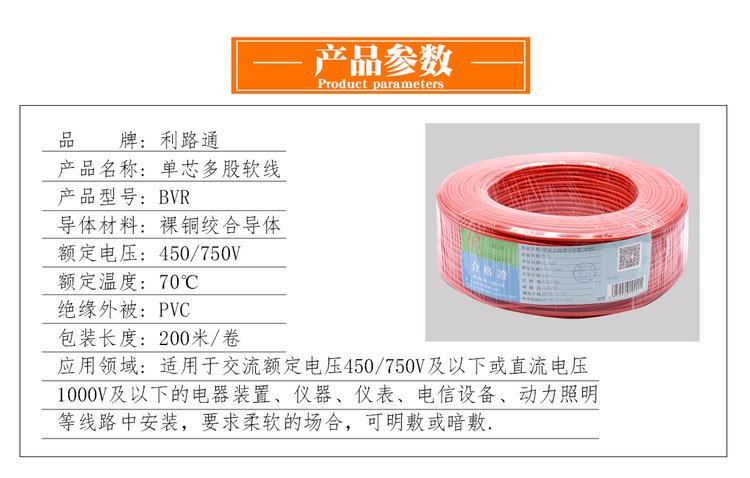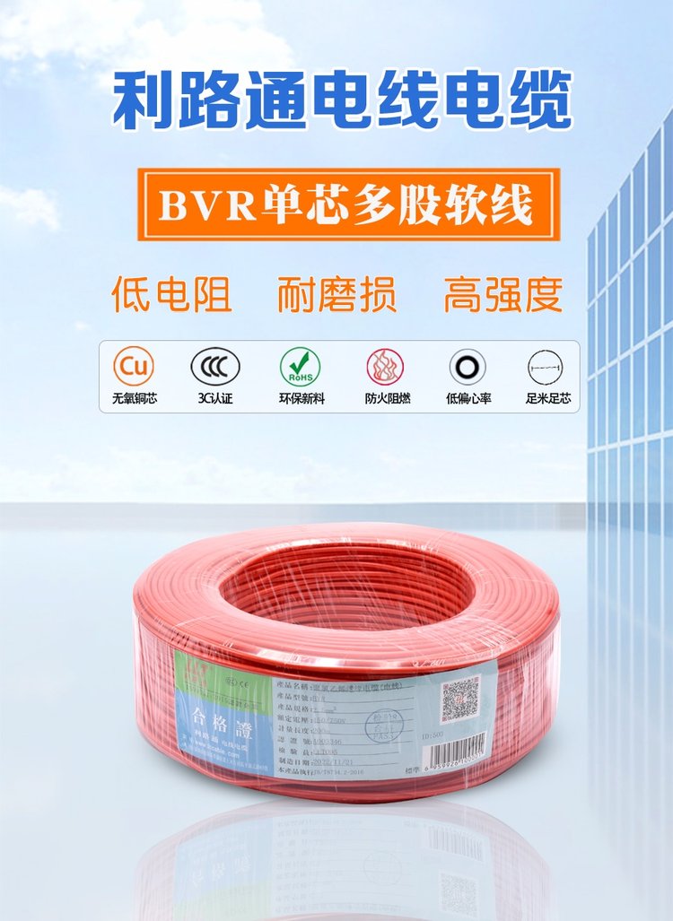 国标电线BVR单芯铜线25平方 源头工厂 利路通电缆