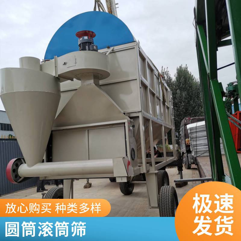 圆筒粮食清理筛 玉米小麦 滚筒筛 移动式除尘圆筒筛