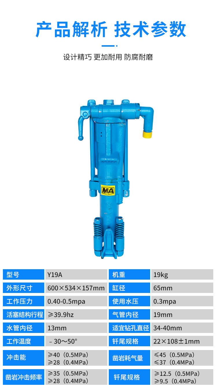 Y19A手持式凿岩机 可干式和湿式操作 小型气腿钻孔机