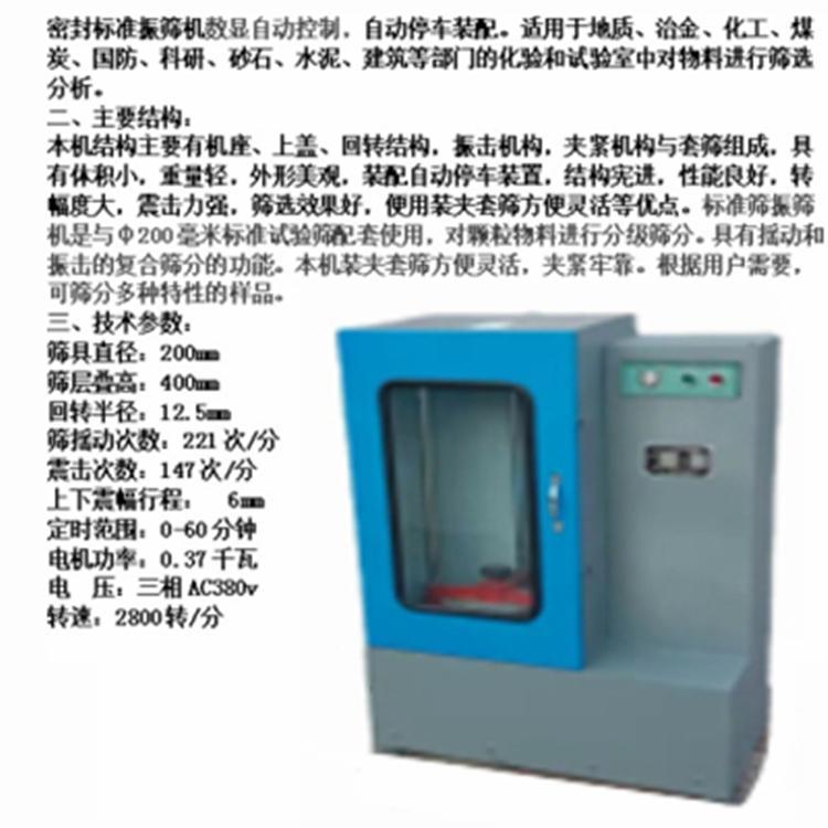 单双层两用振筛机,适用于冶金、地质、燃化、建工、水泥等部门的科研实验单位和工厂实验室,对物料进行筛分之用。筛分机,同时可将物料分为二种或三种粒级,如只需筛分二种粒级,可将空白筛框放置上层筛体的下部,支承筛网框作单层使用,根据使用需要,可更换四层筛网,则可筛分多种级别的产品。振筛机结构:主要由筛体、底座、给料漏斗、支撑装置、支撑弹簧、倾角调整装置、接料桶、压紧装置、拉紧装置等部件组成。