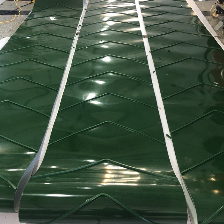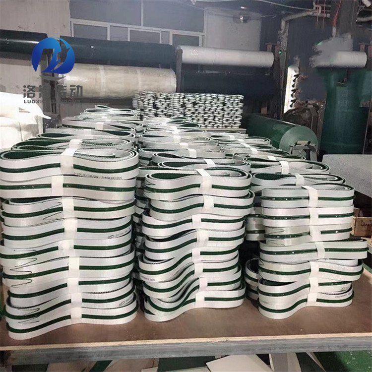 pvc输送带背面加导条 导条定位条输送带 导条pvc输送带输送带跑偏 故障原因分析及解决方案: 1) 机架以及滚筒没有调整平直 方案:调整滚筒或机架,将其保持平直; 2) 托辊轴线与输送带中xing线不垂直 方案:利用托辊调位,纠正输送带跑偏; 3) 输送带接头与zhong心线不垂直,输送带边呈S型 方案:重新将输送带的接头做过,保证接头与输送带中x垂直; 4) 装载点不在输送带(偏载)。 解决方法:调整落煤点位置。