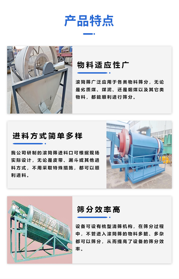 类别 | 煤矸石碎煤渣鹅卵石滚筒筛碎煤电动圆形筛选机 |