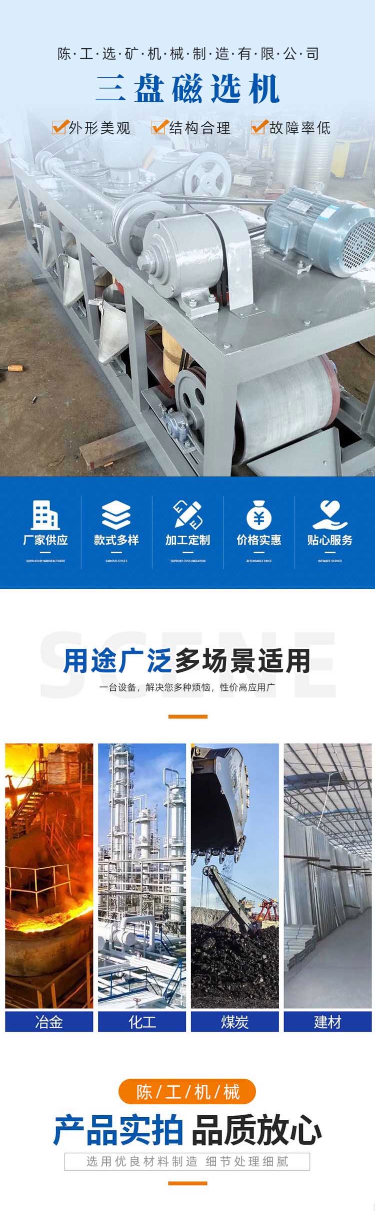 全自动电磁磁选机 三盘磁选干选设备上部给矿广 西磁选设备