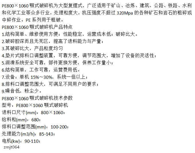 PE800×1060颚式破碎机 性能稳定 操作简单发货及时