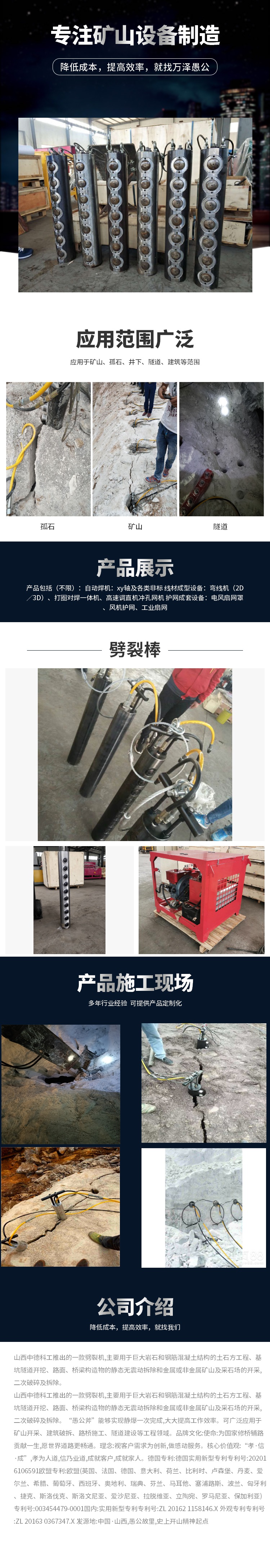 霹雳棒破石方法 露天矿山静态开采劈裂棒 井下煤矿通道掘进劈裂机