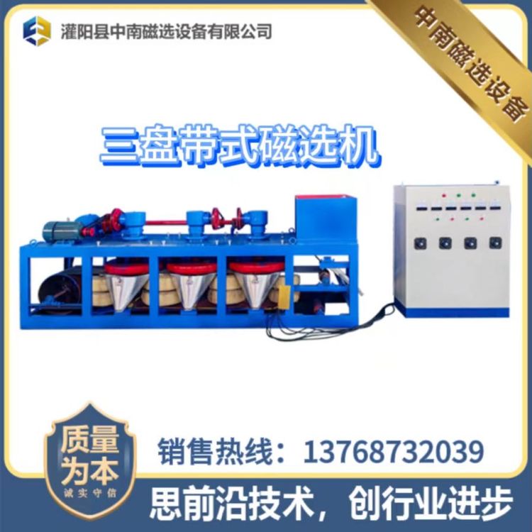 三盘带式磁选机 红柱石 石榴石 矿物除铁 结构紧凑使用维护方便