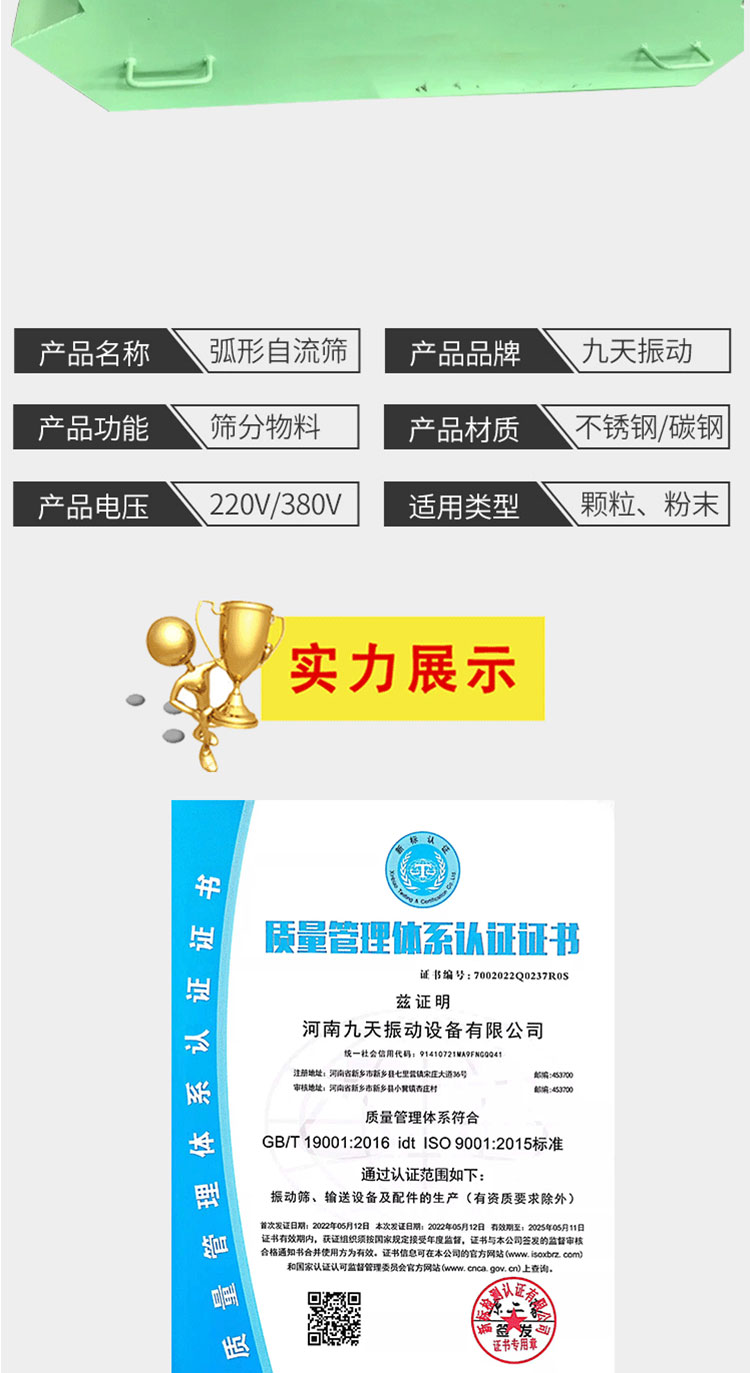 九天揽月 弧形自流筛 电机振动给料机 矿用槽式设备