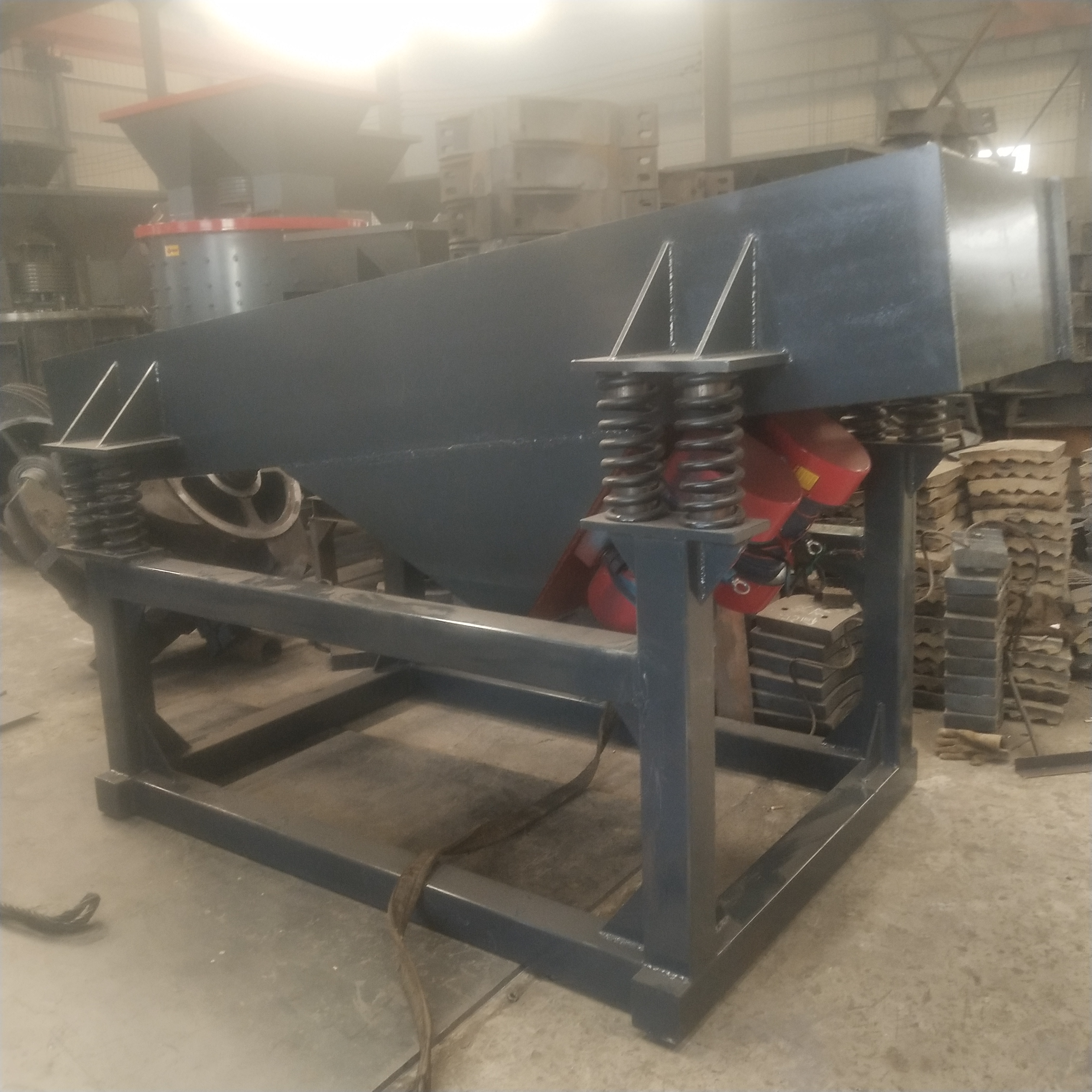 为了提高生产效率在混合机上方配置的准备料仓,使之总有一批配好的物料等待混合,可以提高30%的生产效率,这样才能体现混合机的优势。其次是物料会形成气拱不易下料,料仓上要配置助流气垫或者振动电机;为了检修与密封,料仓口要配气动或者手动阀门;为了下料顺畅,料仓锥体角度不可大于60度。