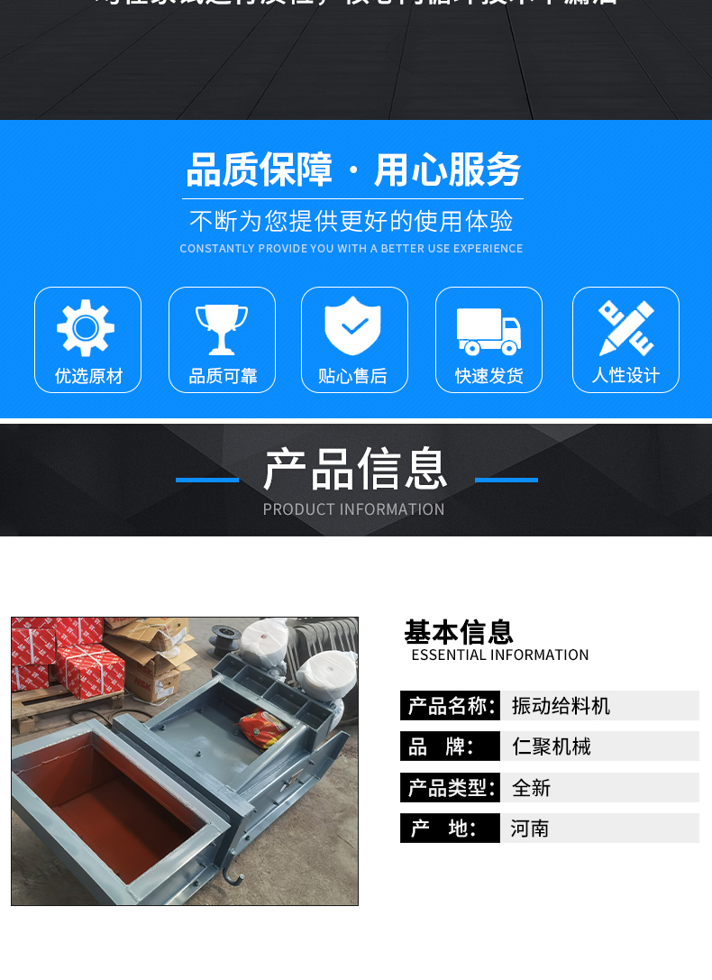 结构简单 振动给料机 调节方便稳定 砂石骨料 仁聚