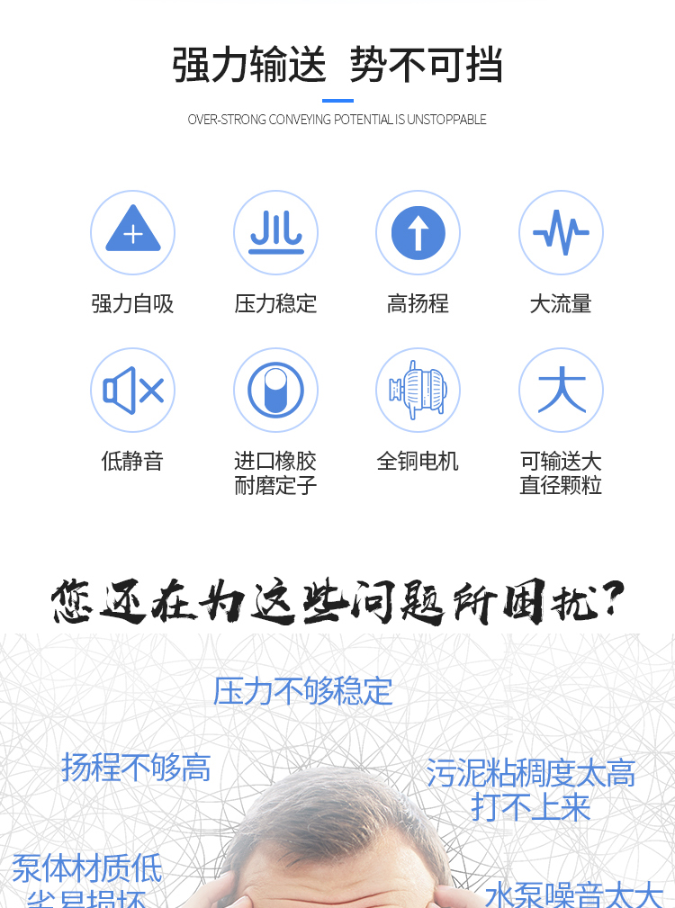输送介质 | 污水、杂质 污泥 食品高浓度液体 |