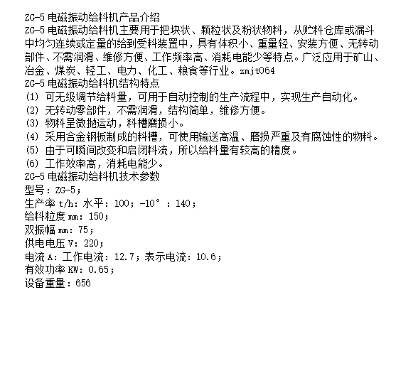 ZG-5电磁振动给料机 性能特点 发货及时 适用范围