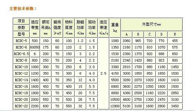 RCDC系列风冷自卸式电磁除铁器,是在RCDA系列风冷悬挂式电磁除铁器的基础上增加了驱动电机、滚筒、带刮板的卸铁胶带等组成的卸铁机构。在工作过程中卸铁机构自动将卸铁皮带上吸附的铁磁性物质跑到除铁器以外的集铁箱内,无需停电人工清理,实现了除铁自动化。