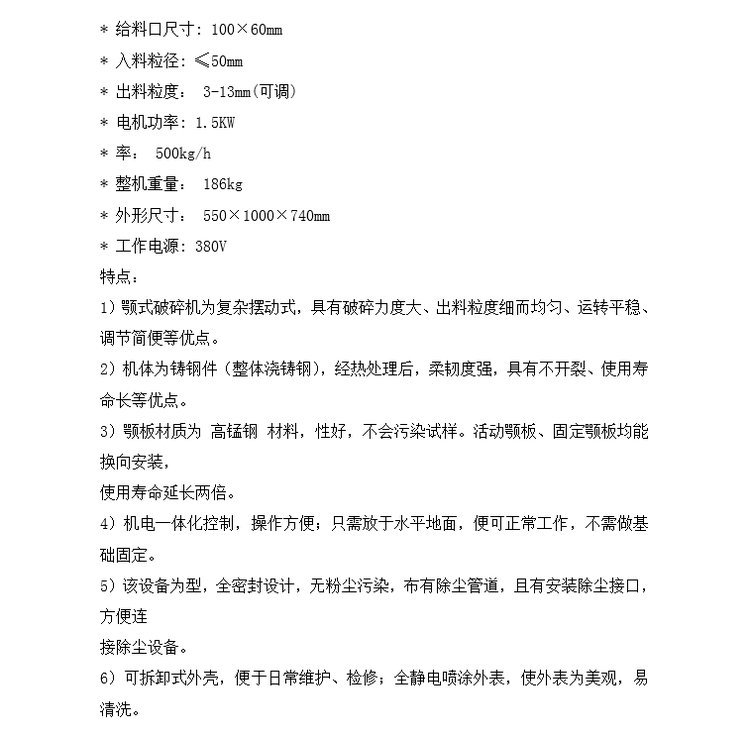 进料口尺寸 | 100×60mm |