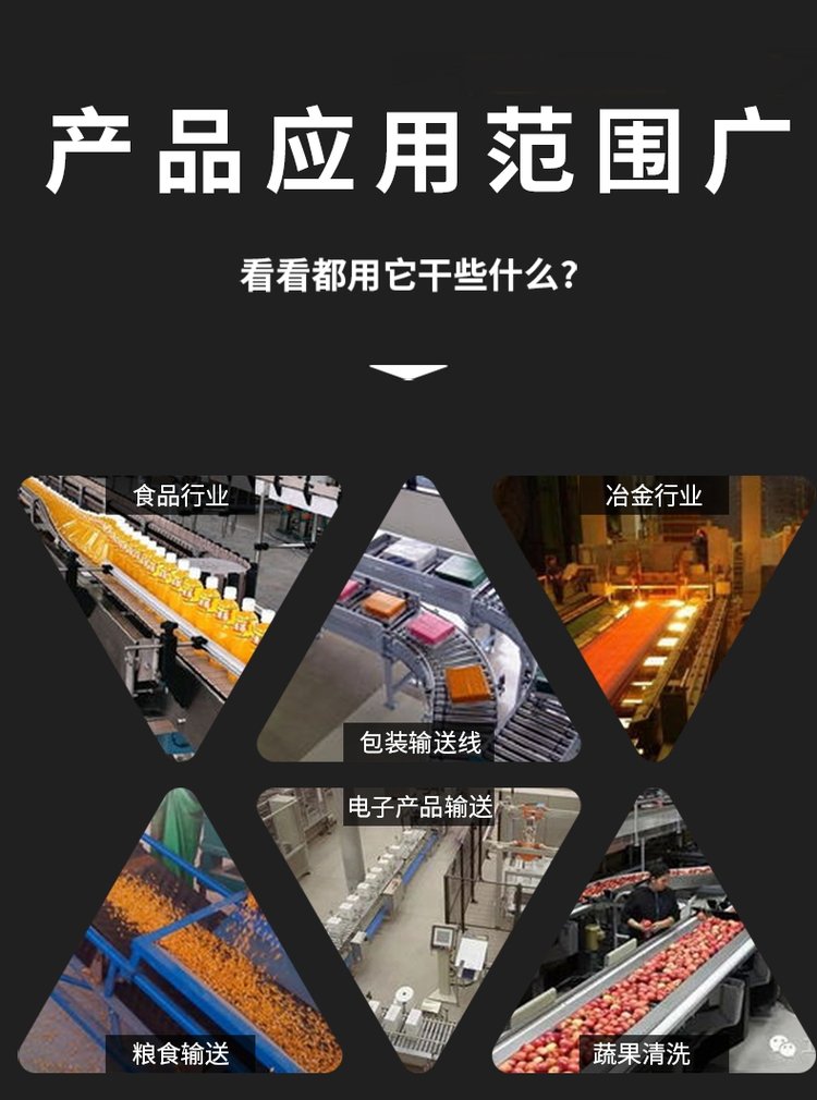 输送物品 | 食品、化工品、电子产品、汽车零件、加工件、各类箱包、玻璃瓶、PET瓶、易拉罐等 |