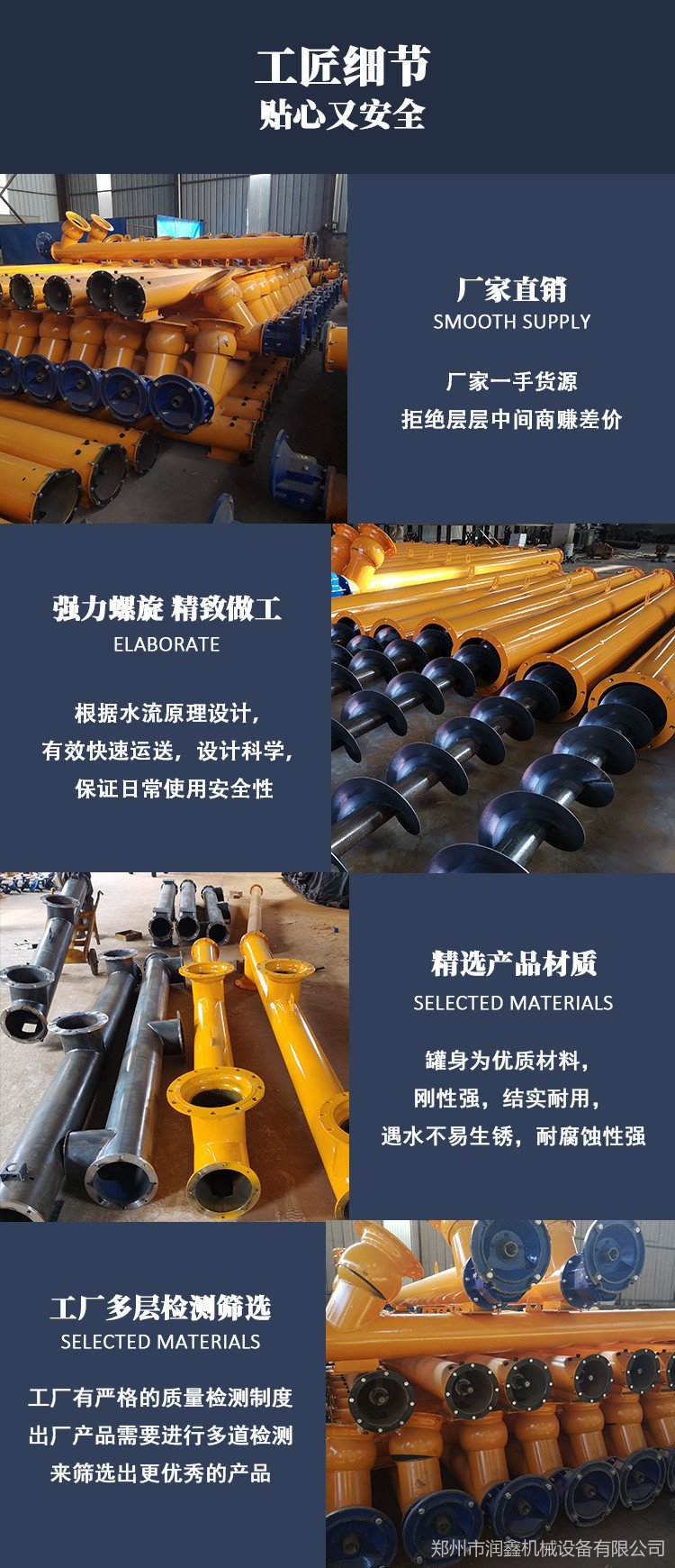 优势:结构简单、横截面尺寸小、密封性好、工作可靠、制造成本低,便于中间装料和卸料,输送方向可逆向,也可同时向相反两个方向输送。输送过程中还可对物料进行搅拌、混合、加热和冷却等作业。通过装卸闸门可调节物料流量。