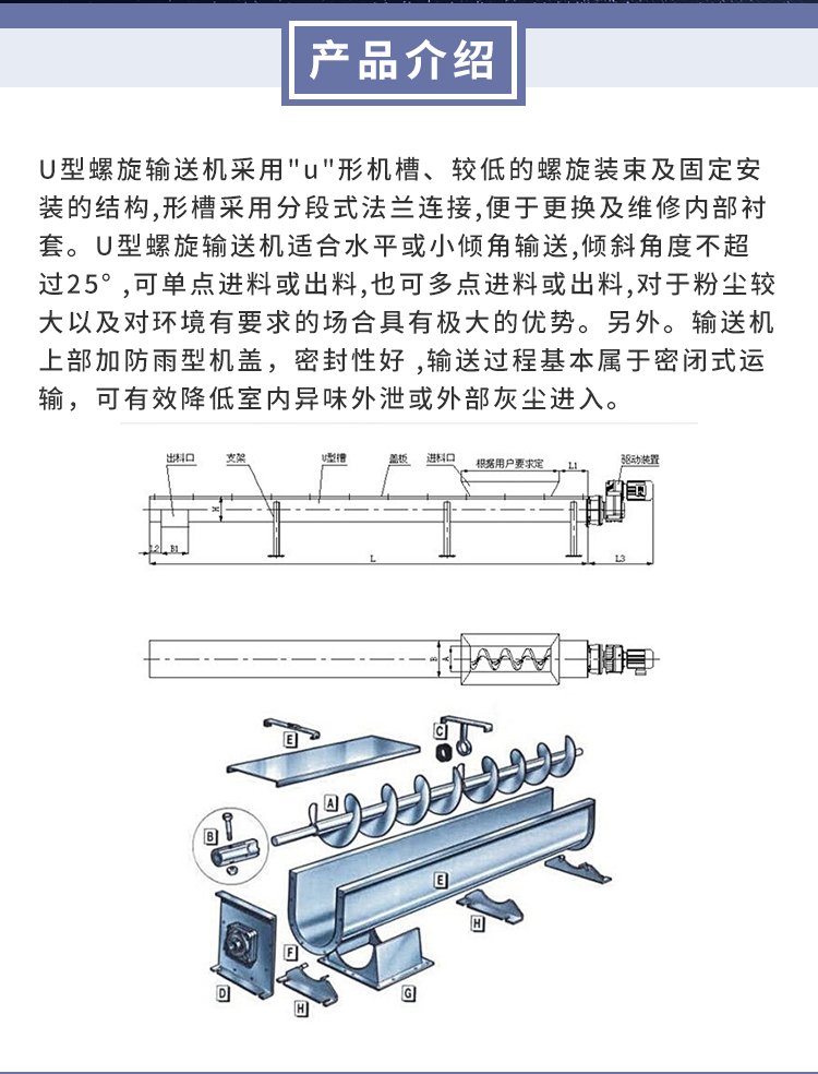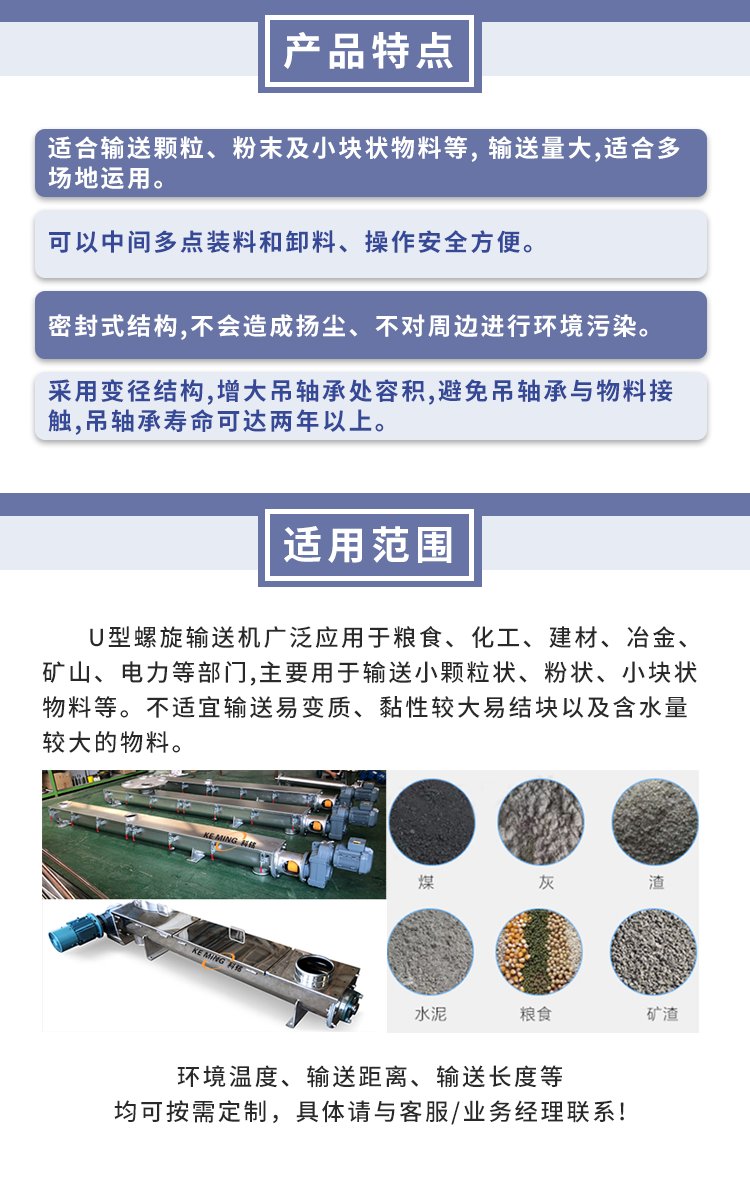U型螺旋输送机 不锈钢管式蛟龙单轴 科铭送料机