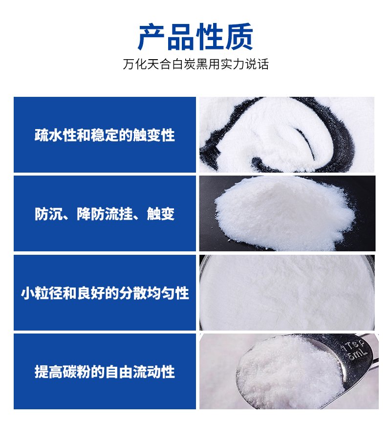 产品介绍:化学纯度高、吸附性强、分散性能好、热阻、电阻等方面具有特异的性能,以其优越的稳定性、补强行、增稠性和触变性。
