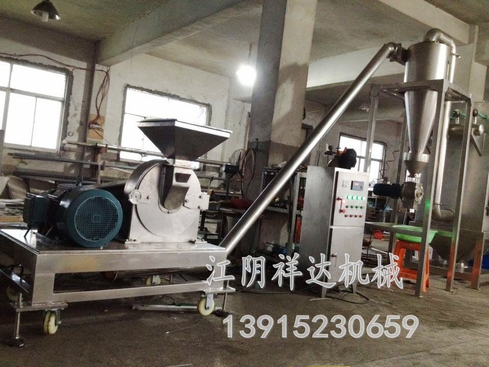 水产饲料超微混合机适用于食品(玉米、麦芽糖、大米、生姜、辣椒、胡椒、油麦、大豆、八角、桂皮、脱水蔬菜、山楂、干姜、洋葱、蒜、香葱、胡萝卜、豆粕、植物纤维、淀粉、鱼粉、香精香料、甲壳素、白菜、粮食类、虾皮、调味品、香辛料、人参、西洋参、农副产品、山药、熟地、菠菜)、制药、饲料、碳酸钙、中草药等低硬度物料的超细粉碎。