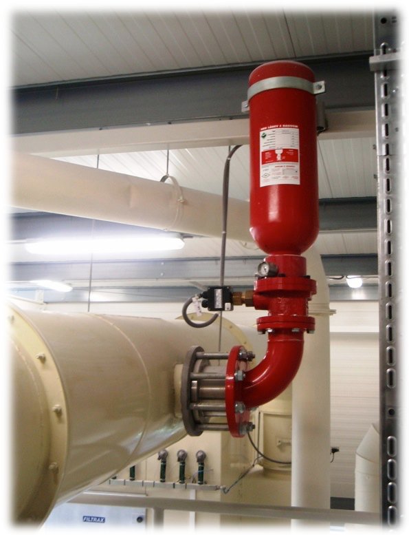 典型应用于静电粉末喷涂行业中除尘器入口管道的隔爆;