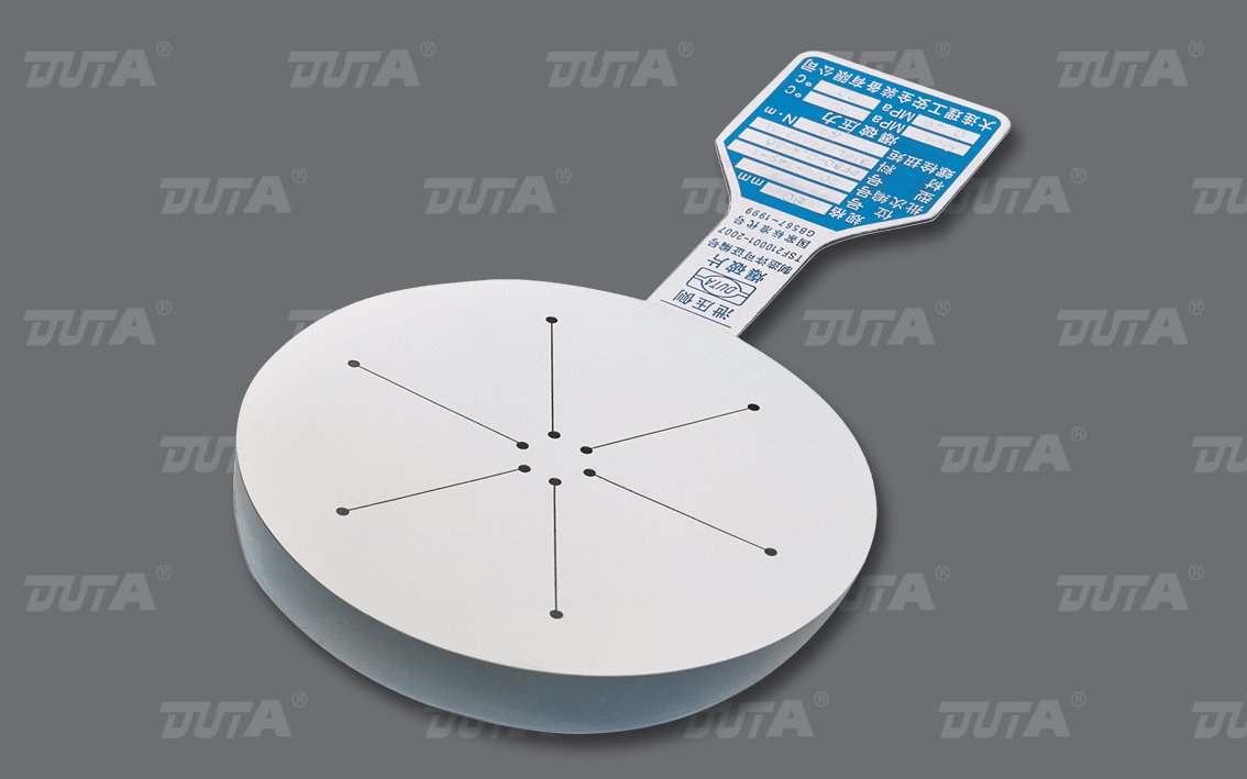 平板开缝型爆破片为不预拱的开缝型爆破片。爆破压力由周边透缝(或 中心处)及相邻终止孔间构成的减弱结构控制,爆破沿透缝撕裂形成泄放通道。