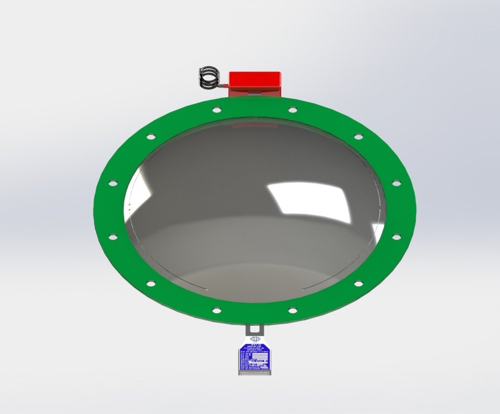 烟道用爆破片为正拱开缝型的特殊样式,工作机理和正拱开缝型相同。此爆破片为组合式结构,材质为奥氏体不锈钢,密封膜为铝膜,并在爆破片两面配有垫圈,周边加工有规律螺栓孔,用相应法兰直接对夹安装即可。