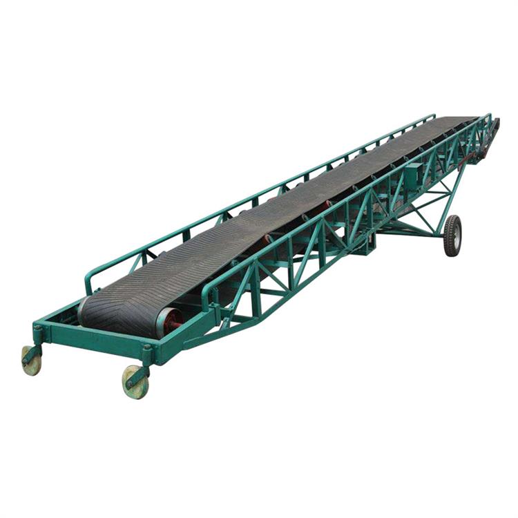 物料由喂料端喂入,落在转动的输送带上,依靠输送带摩擦带动运送到卸料端卸出。