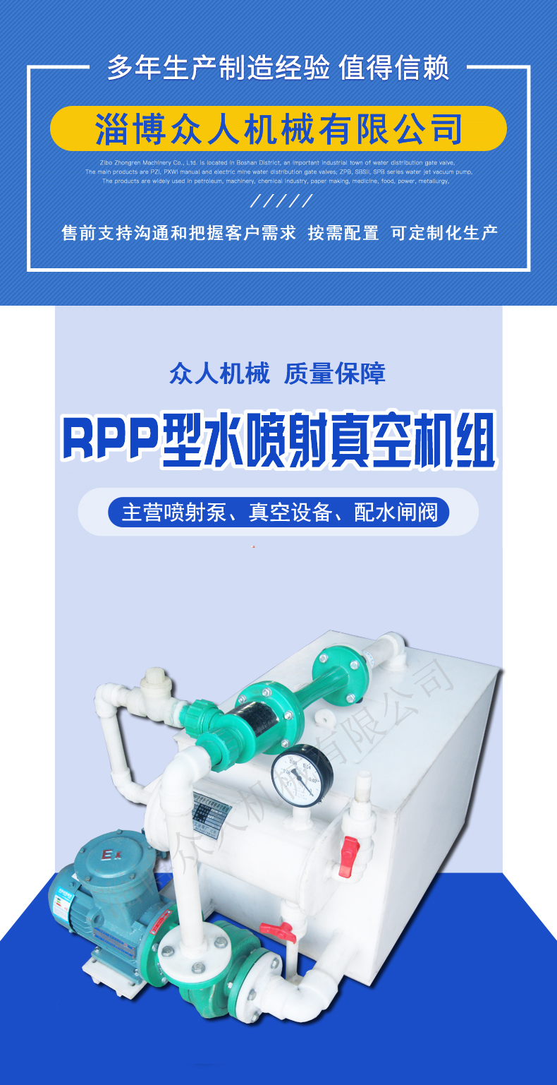 众人 石油化工行业用PP 水喷射式环保型真空机组 螺杆喷射真空泵