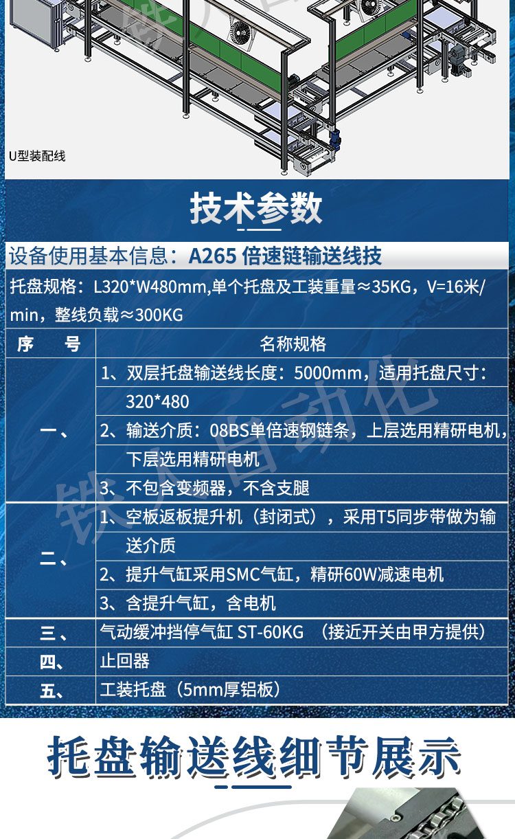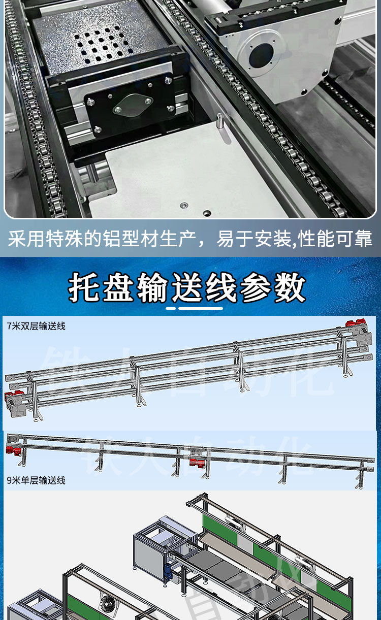 铝合金单倍速链08BS输送 双层循环自动化链式托盘输送线机械设备