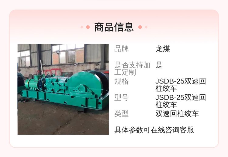 龙煤JSDB-25双速回柱绞车 矿山机械提升设备定制