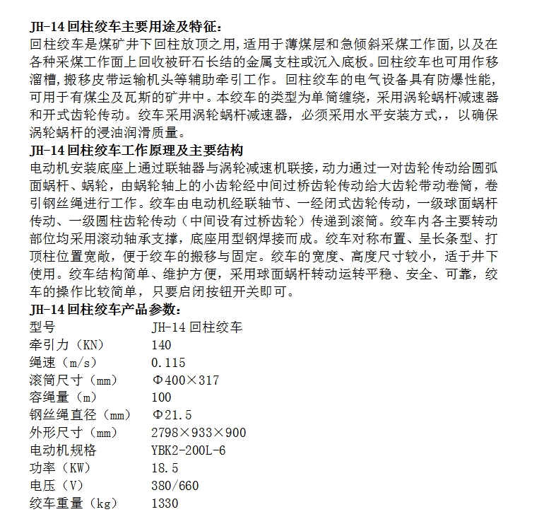 中重智能出售 性能安全稳定JH-14防爆回柱绞车