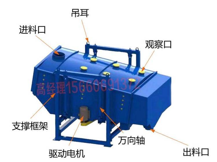 5.针对化肥、饲料、食糖、食盐等颗粒状物料要求生产的场合,一台可替代多台同等功率的振动筛,进而节约了空间小的问题。