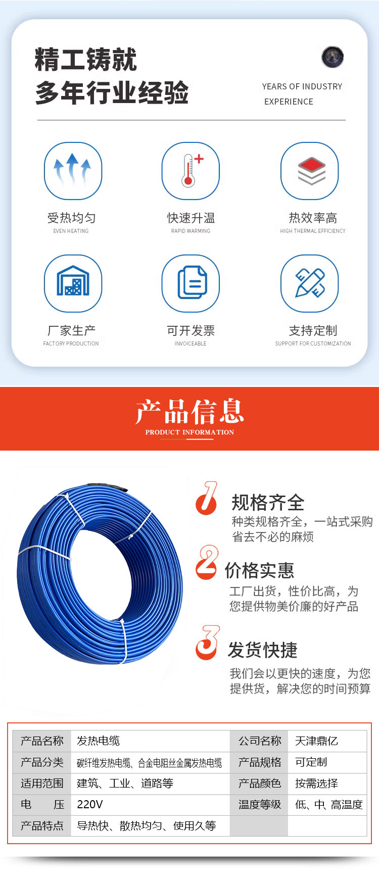 发热电缆直径 | 4mm-5.11mm |