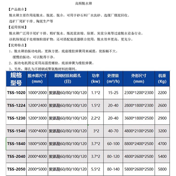 1550细沙脱水筛震动筛聚氨酯筛板尾矿干排泥浆分离机泥沙筛分机
