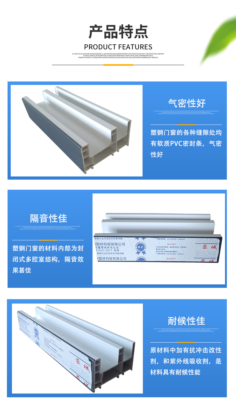 产品特点 | 气密性好,隔音,耐候,防火,耐冲击,易清洗等 |