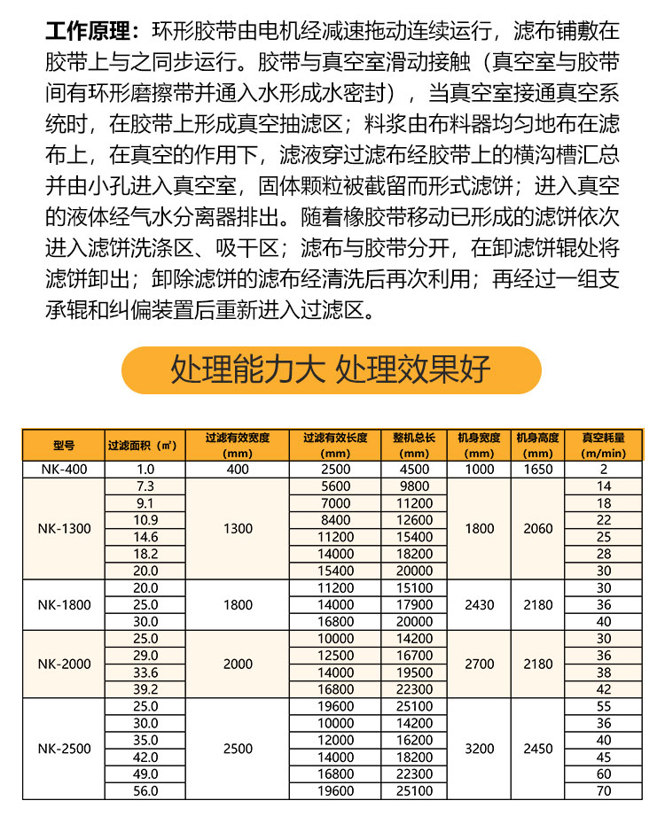 过滤脱水机工作原理 | 真空负压下,液体通过滤布被抽走 |