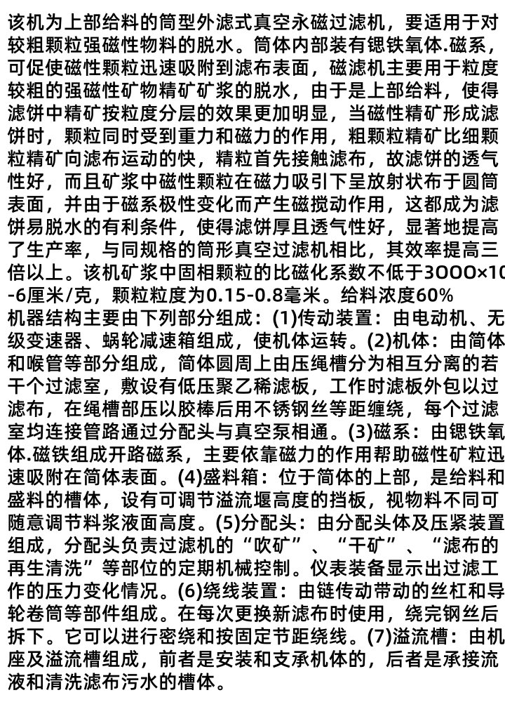 真空永磁过滤机 铁矿